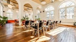 From the moment you step inside, the building’s railway heritage is evident. The grand, refurbished station retains its platform structure and generous proportions. The founders have created a coffee shop and a dining area, featuring a menu that changes with the seasons. The team places a strong emphasis on hospitality and service quality: fast Wi-Fi, naturally bright spaces, and a warm, welcoming atmosphere.